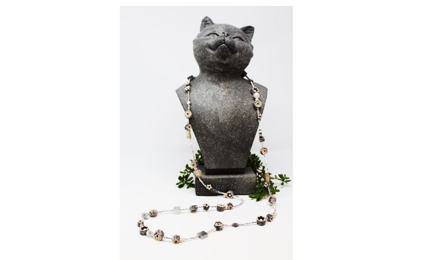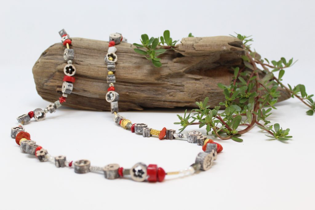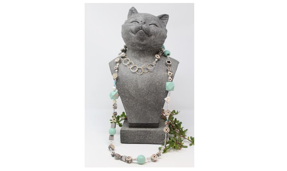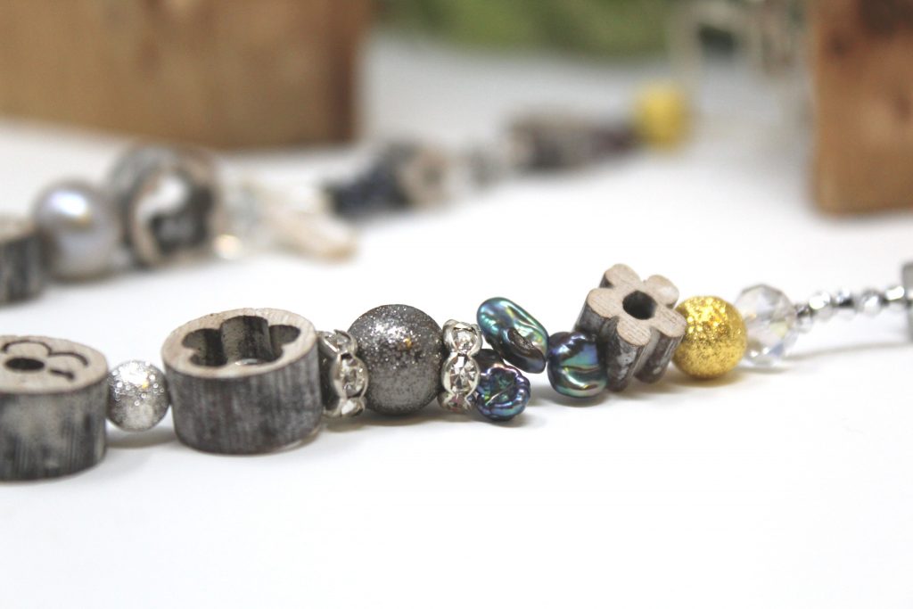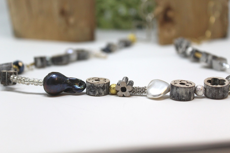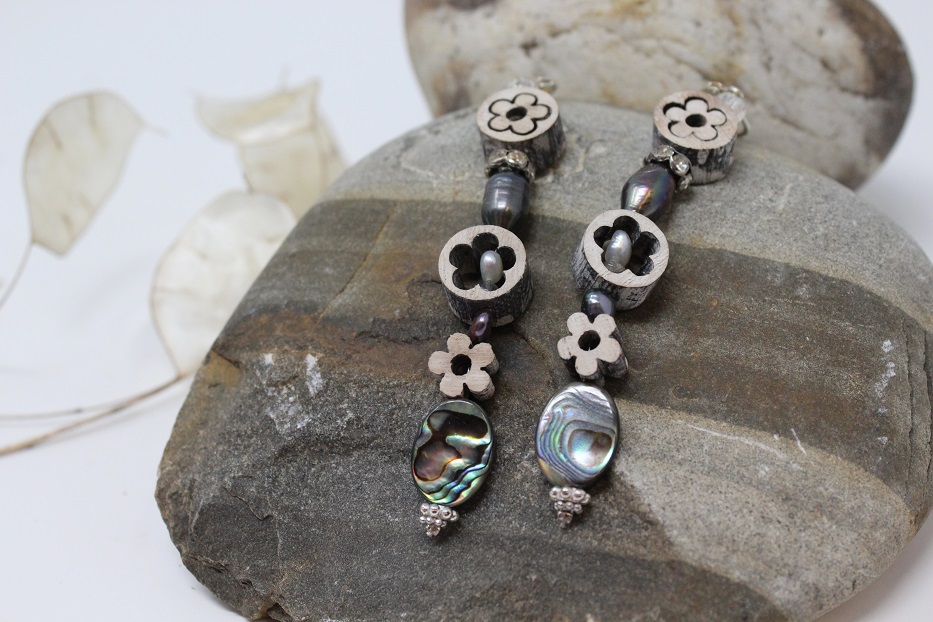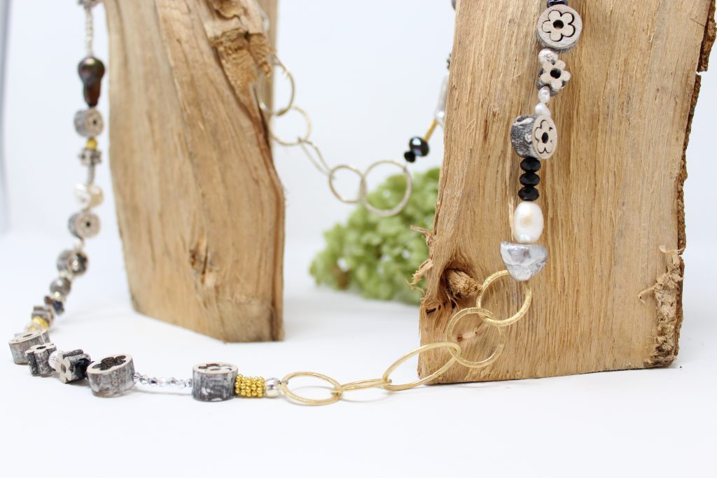 … das ist für mich leichter luftiger Schmuck, den man natürlich nicht nur im Sommer tragen kann. Ketten und Ohrringe mit leichten Holzblümchen und vielen bunten Steinen zum Beispiel.